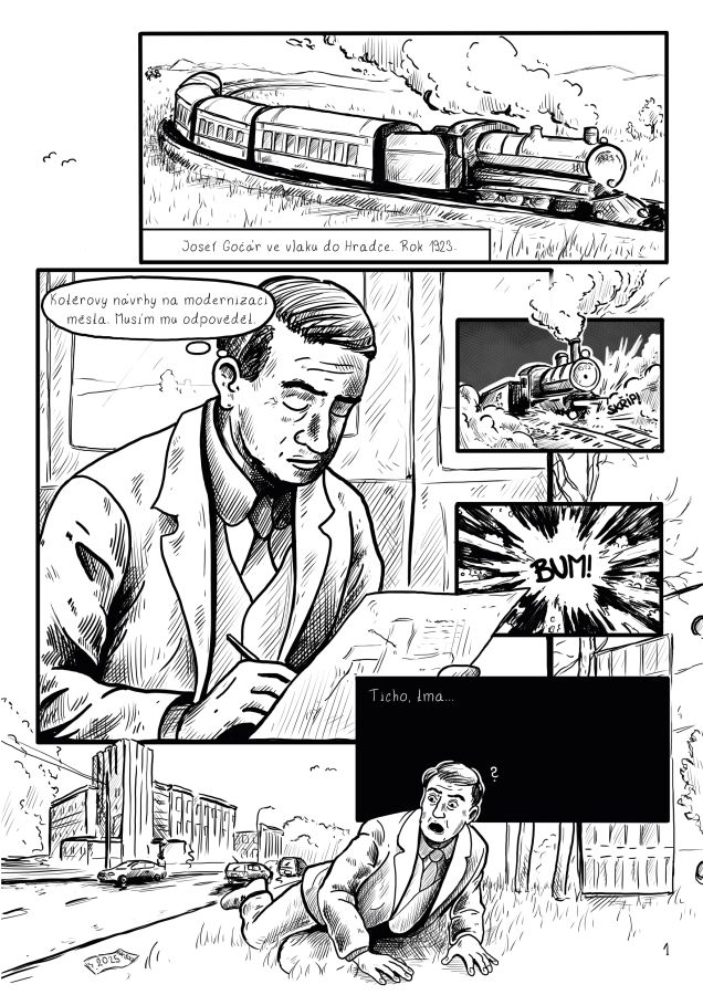 Příběh je tichým dialogem mezi minulostí a přítomností, mezi tvůrcem a městem, které žije dál. V komiksu můžete vizuálně projít celým Hradcem a sledovat, jak se Gočárovy stavby a plány střetávají s moderní podobou města a odlišným pohledem současné generace. Komiks si pohrává s otázkou, jak by Gočár reagoval – byl by nadšený, nebo zklamaný?
